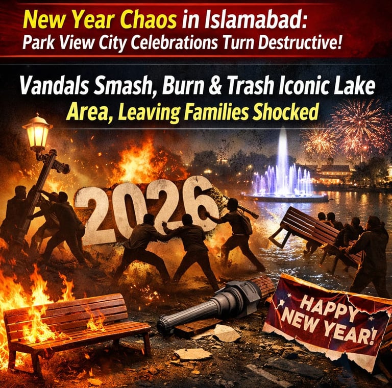 While Pakistan’s major cities welcomed 2026 with dazzling fireworks and celebrations, Islamabad’s Park View City experienced a night of chaos as unruly visitors turned a family-friendly event into a scene of destruction.
