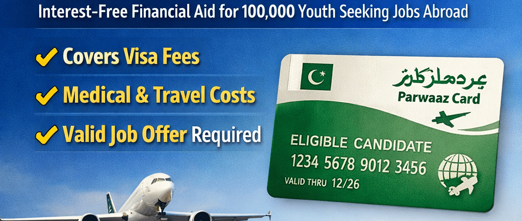 The Punjab government has launched the Parwaaz Card Program, offering interest-free financial assistance to 100,000 eligible youth seeking jobs abroad to cover visa, medical, and travel expenses.